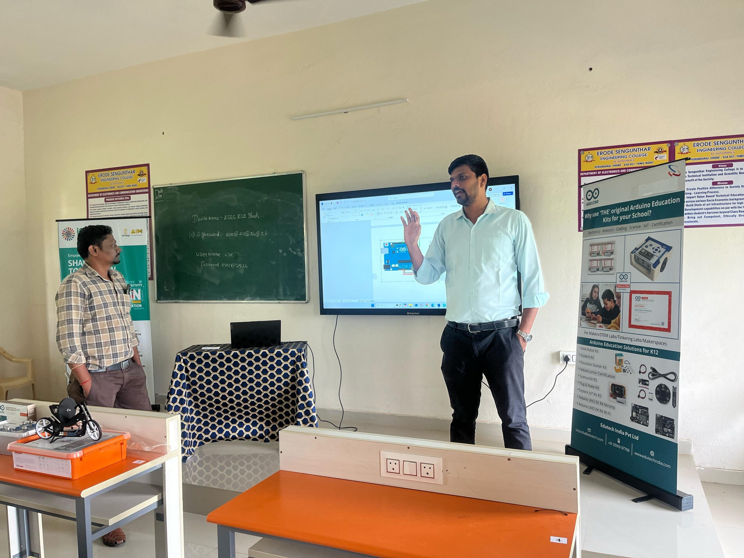 This transformative initiative, organized in collaboration with the Atal Innovation Mission, Arduino Edutech India, and the Erode-Namakkal ATL SARTHI Cluster, was designed to equip teachers with hands-on experience in Arduino-based innovation, IoT, and sensor technologies—empowering them to lead the next generation of innovators.